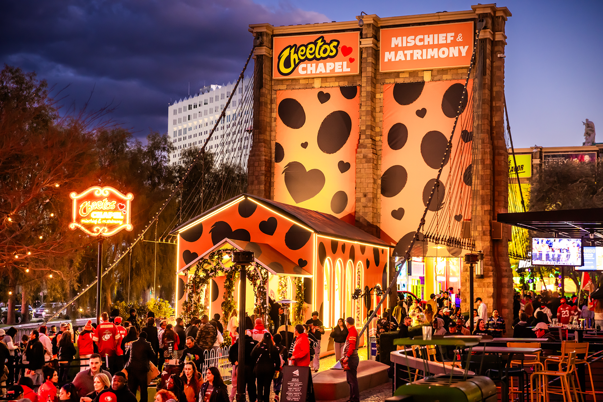 Loud, colorful, unapologetically kitsch. A collision of snack food and spectacle, gameplay and architecture. Built for the 2024 Super Bowl in Las Vegas, the project transforms Cheetos and other Frito Lay brands into chapel, stage, and celebration. It is wild and exuberant, covered in orange dust and neon lights. It celebrates the excess of pop culture architecture.