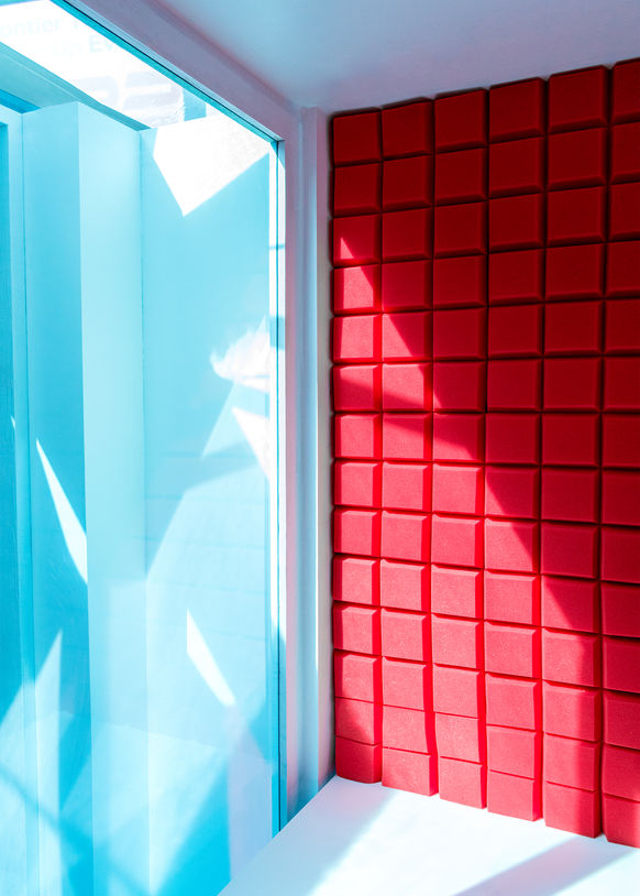 An installation on Abbot Kinney in Los Angeles. Built for Frontier, designed as a two-day spectacle. A celebration of speed, color, and connection. The project makes digital capabilities formal: bright, bold, and high-tech. A grid unfolds at multiple scales from structure to surface organizing space, light, and flow. The result is part party, part pavilion, part advertisement. Temporary, immersive, and impossible to miss.